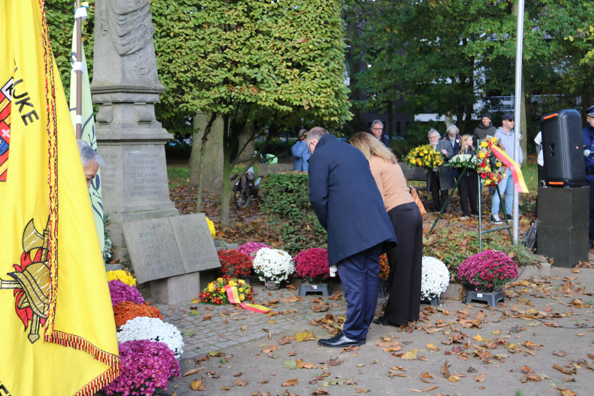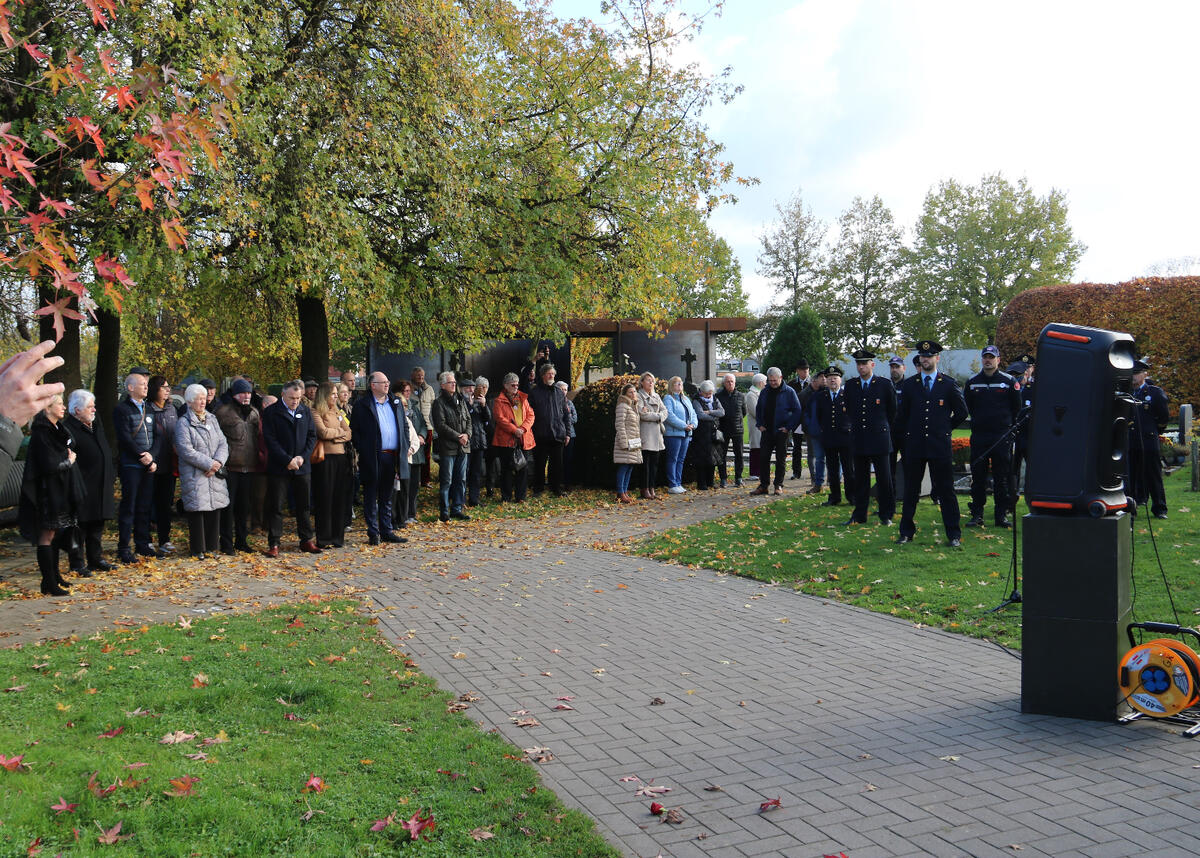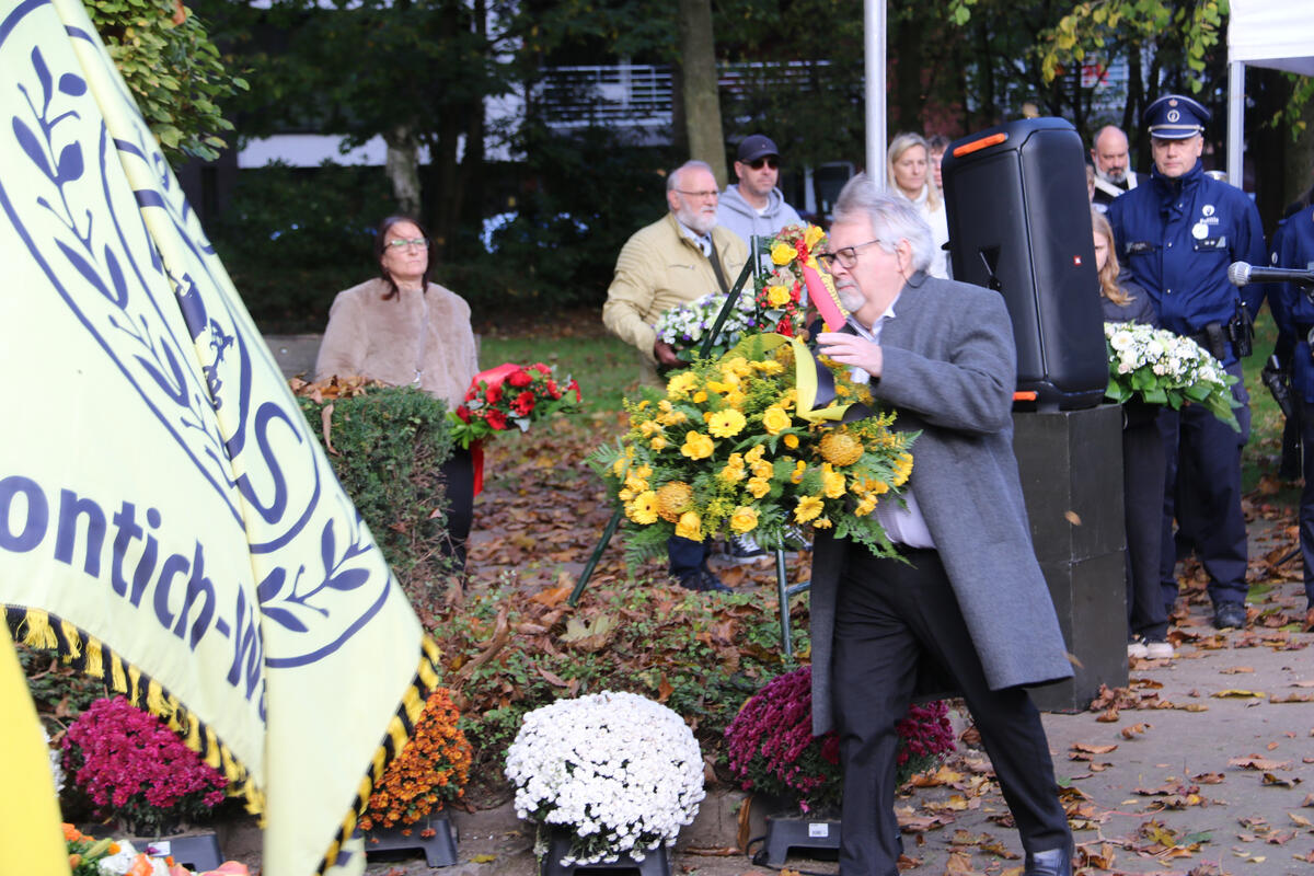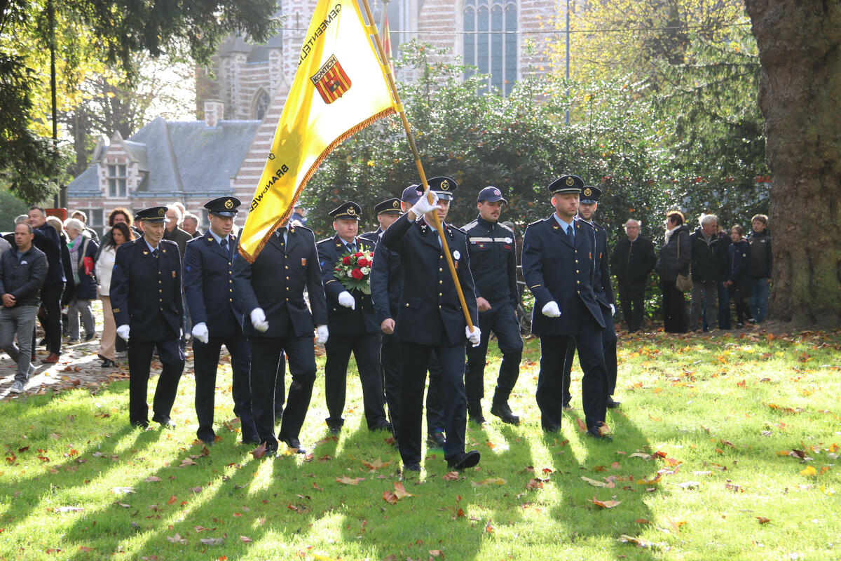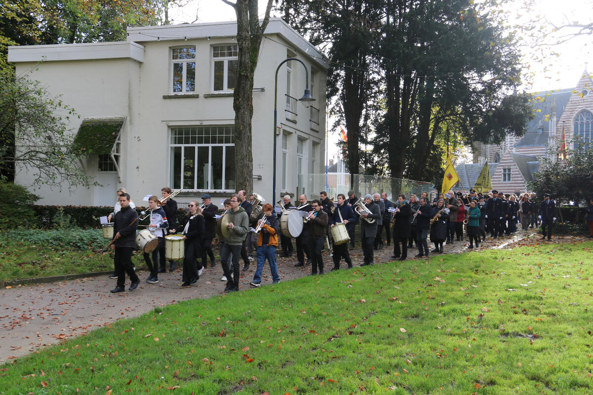 De 11 november herdenking aan het monument in het gemeentepark vond dit jaar plaats onder een mooie herfstzon.
