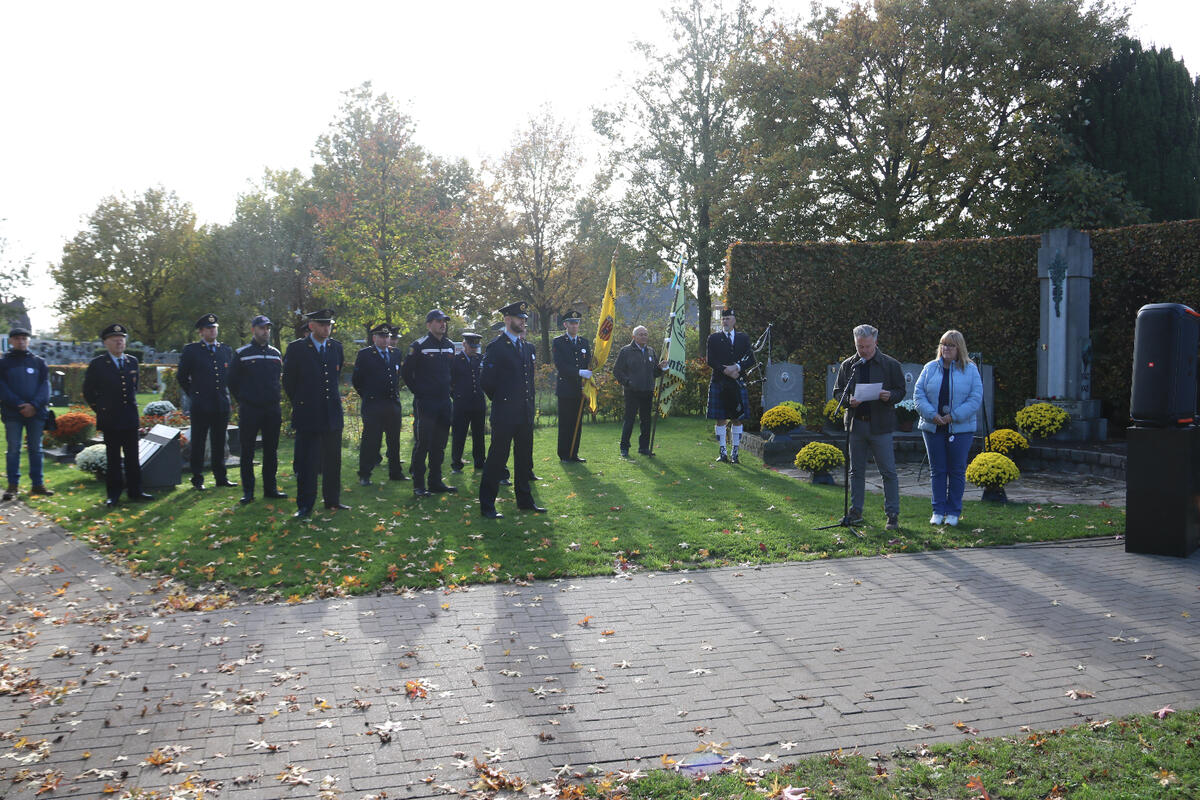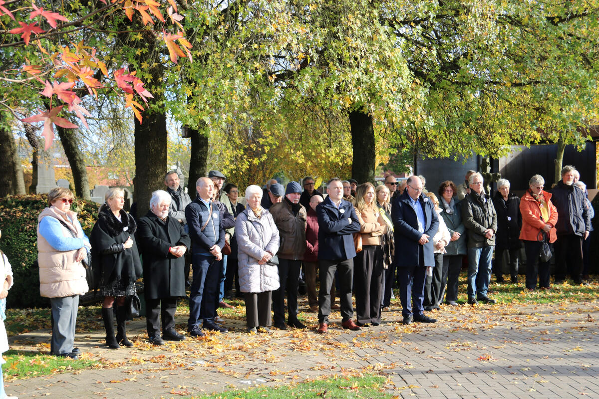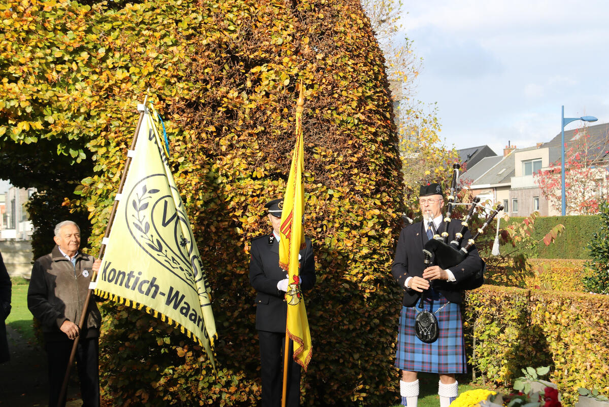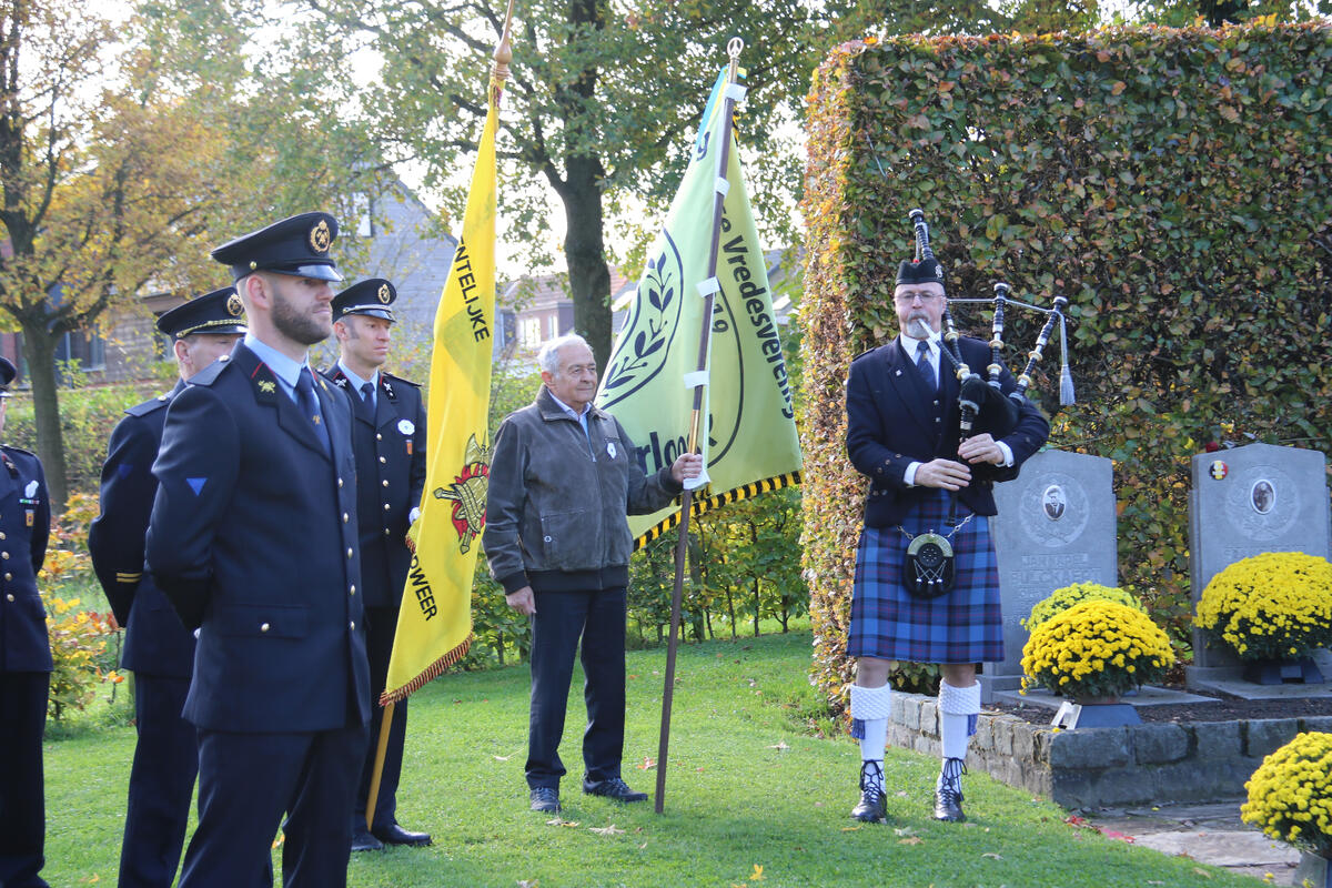 Na de toespraak van onze burgemeester Bart Seldeslachts werden er bloemen neergelegd namens de gemeente en door onze voorzitter Peter Goossens namens de N-VA. Daarna was er nog een ingetogen herdenking op de gemeentelijke begraafplaats begeleid met doedelzak muziek door Dirk Jamin.