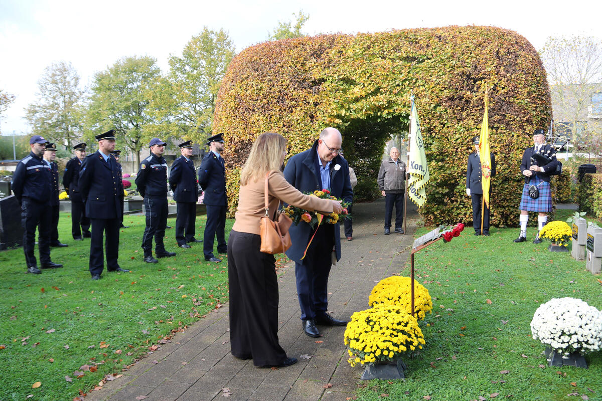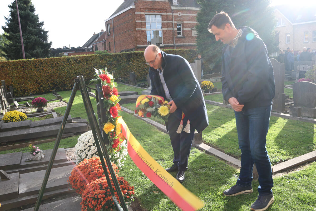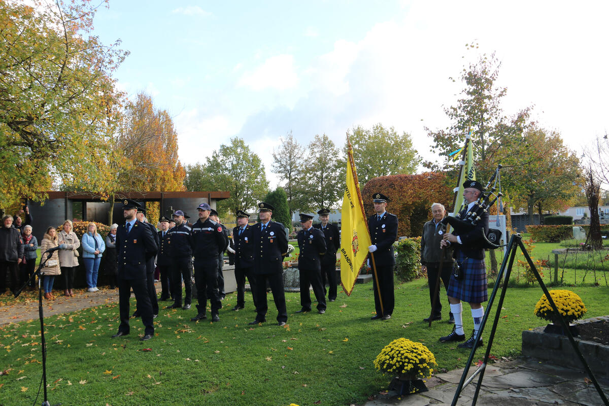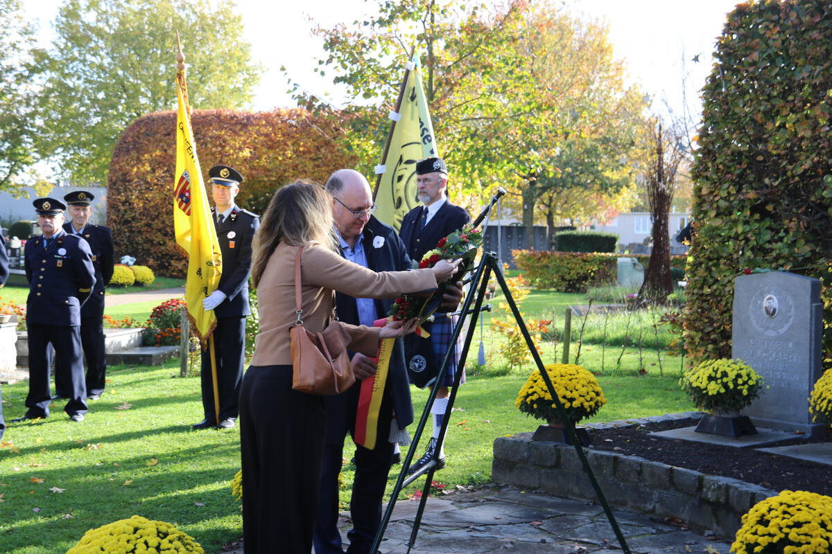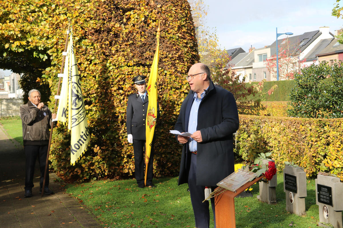 Na de toespraak van onze burgemeester Bart Seldeslachts werden er bloemen neergelegd namens de gemeente en door onze voorzitter Peter Goossens namens de N-VA. Daarna was er nog een ingetogen herdenking op de gemeentelijke begraafplaats begeleid met doedelzak muziek door Dirk Jamin.
