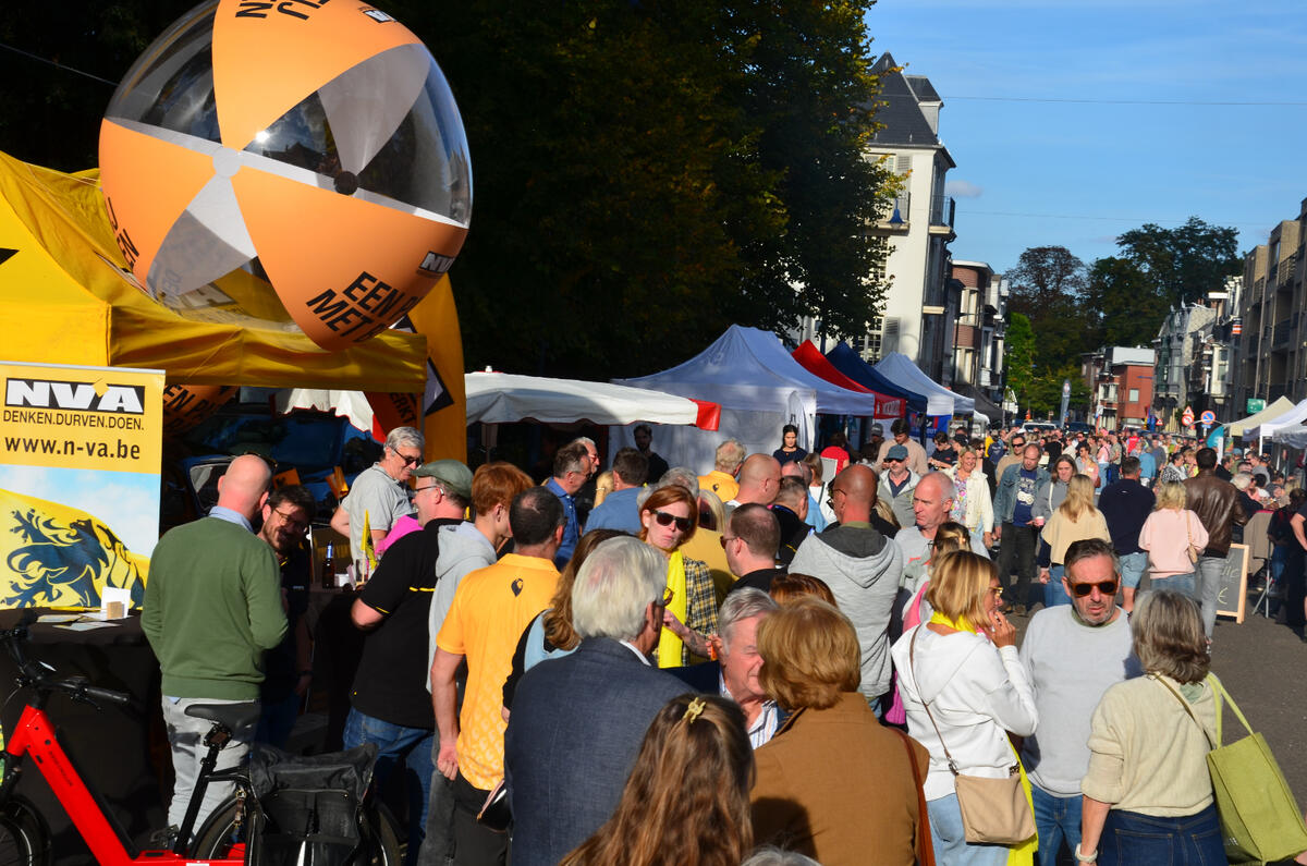 Na de officiele opening door onze burgemeester en de schepenen kon het feest echt van start gaan met een optreden van Garry Haggar en zijn band. Zowel de zaterdag als de zondag kon je letterlijk over de koppen lopen en hadden wij continu veel bezoekers aan onze N-VA stand.
