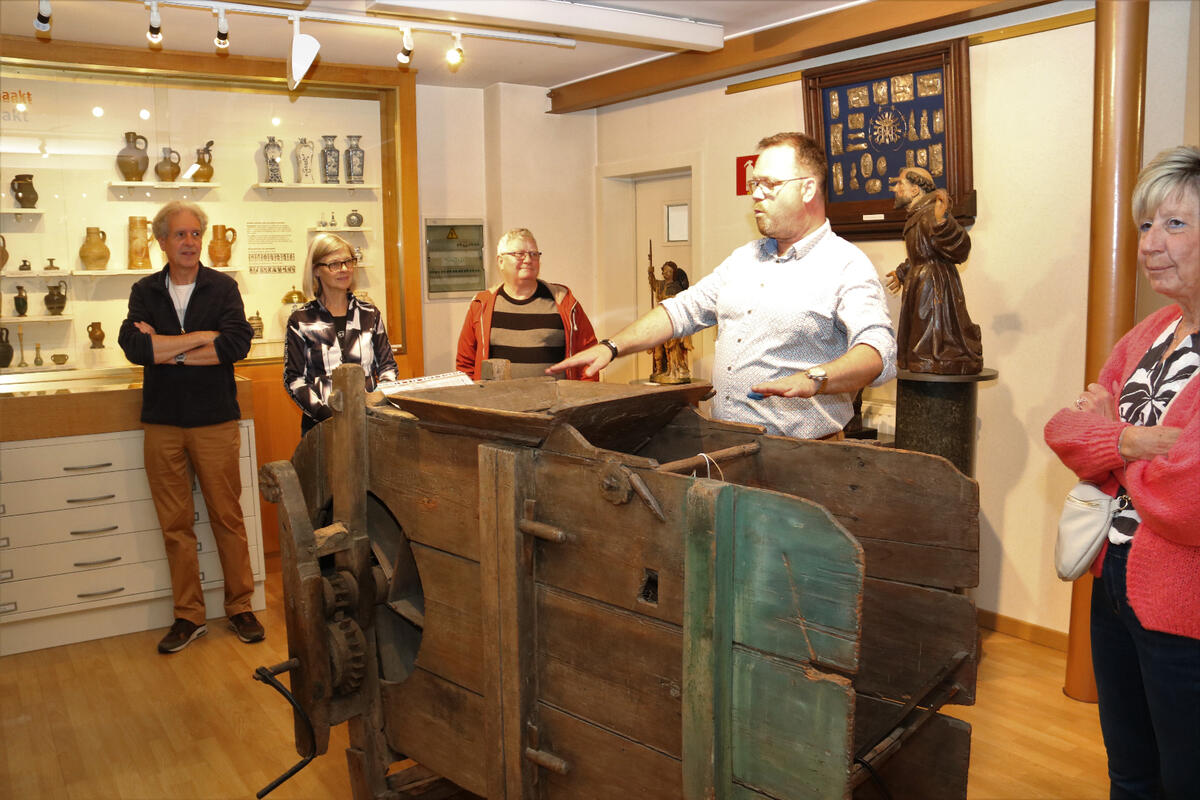 Vader en zoon, Guido en Kristiaan Theys, namen met verve de rol van Tom Waes over om het verhaal van Contich te vertellen met een deskundige rondleiding in het museum.