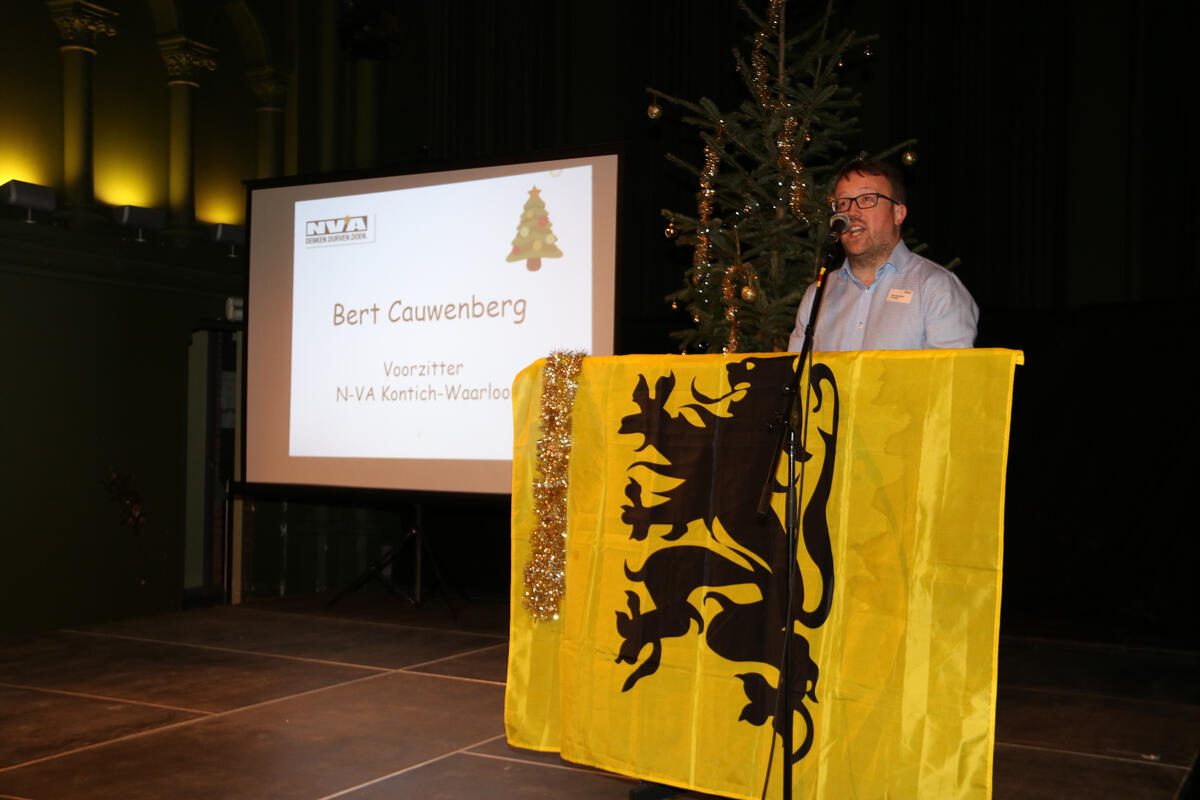 Niet Jan Jambon, maar N-VA-fractieleider in de kamer Peter De Roover verblijdde een bomvolle Altena Cultuurkapel met zijn toespraak tijdens de jaarlijkse kerstdrink van onze afdeling. Iedereen hing aan zijn lippen, en daarna genoten we samen van een gezellige babbel en de hapjes.